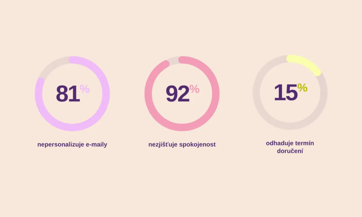Celých 81 % e-shopů neposílá personalizované e-maily. Každý desátý e-shop posílá e-maily bez jakéhokoli vizuálního zpracování. A pouhých 15 % odhaduje v e-mailu termín doručení – přitom právě tohle zákazníci chtějí vědět jako první.